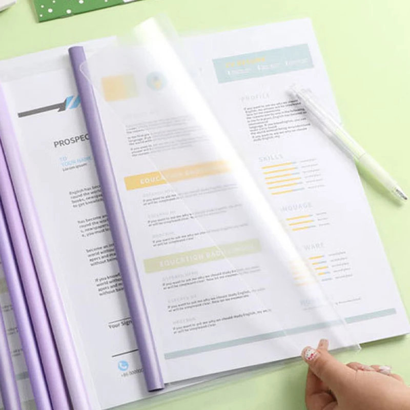 10pcs Transparent File Document Thicken Draw Rod A4 Folder Test Paper Storage Bag Clip Office Folder Organizer Office Supplies