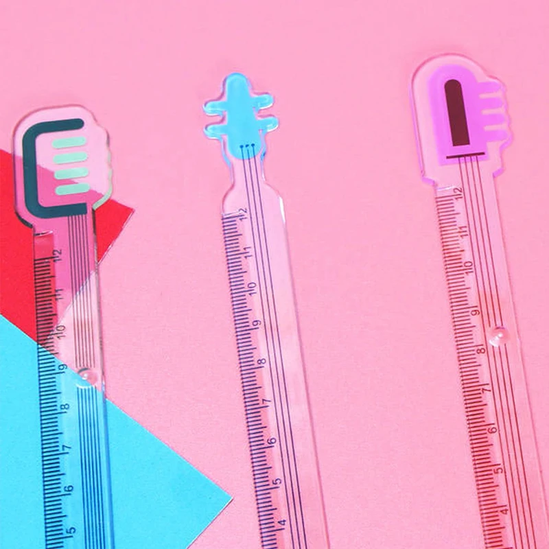 12cm transparent plastic Guitar ruler, simple style, cute portable tool for students, school and office, stationery