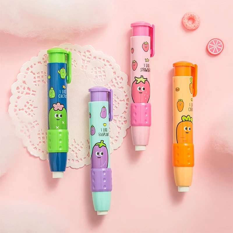 1pc Cartoon vegetables and fruits Push-pull Erasers Student Rubber Writing Drawing Eraser Creative Pencil Eraser School Supplies
