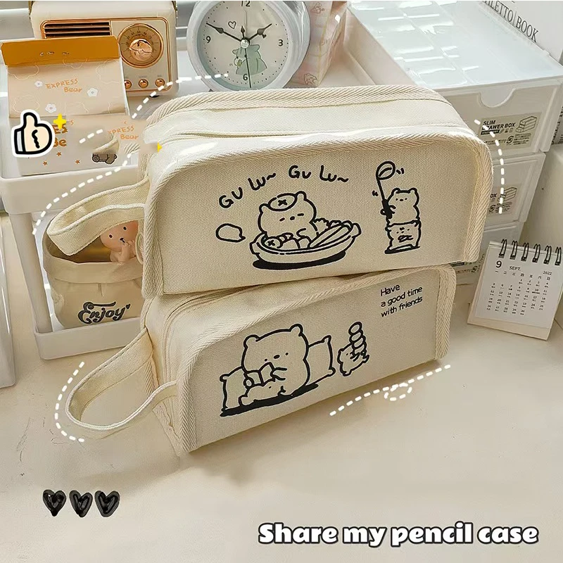 1pc Multi-layer pencil case with large capacity, multi-purpose student pencil case and makeup storage bag - cute reading bear