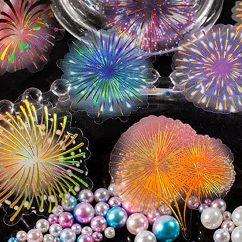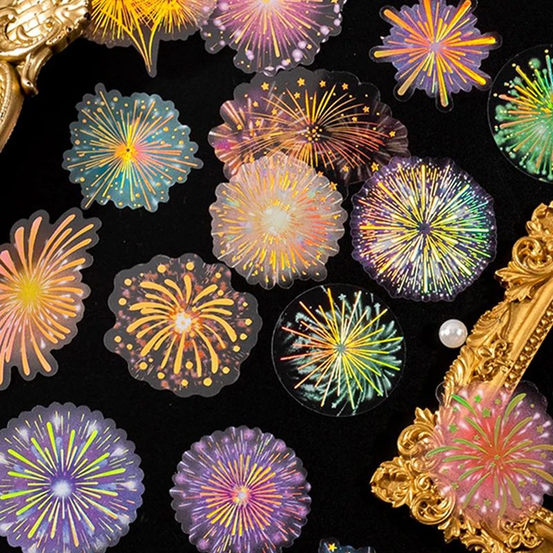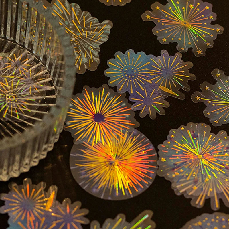 20pcs Vintage Fireworks Stickers Foil Gold Collage Junk Journal Planner PET Laser Stickers Album Phone Scrapbooking Material