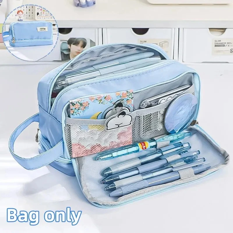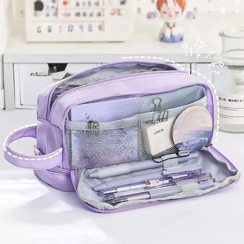 Macaron Pencil Case Double layer Large Capacity pencil bag Cute Back to School Stationery Supplies Schools